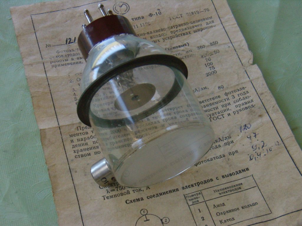 Вакуумный фотоэлемент – это фотоэлектрический преобразователь, а попросту приемник излучения, действие которого основано на внешнем фотоэффекте. Имеет внутри колбы фотокатод и анод и работает конечно в вакууме, что исключает влияние ионизации газа на его электрические свойства.